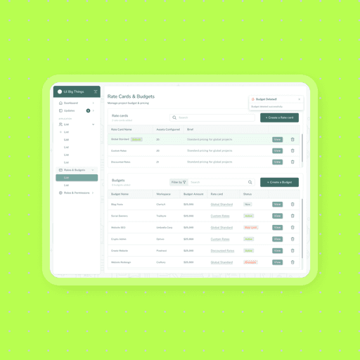Stay on top of your budgets and deliverables Live budget burn-down charts, map your POs, track deliverables against the budgets so you never underdeliver (or overdelivery)