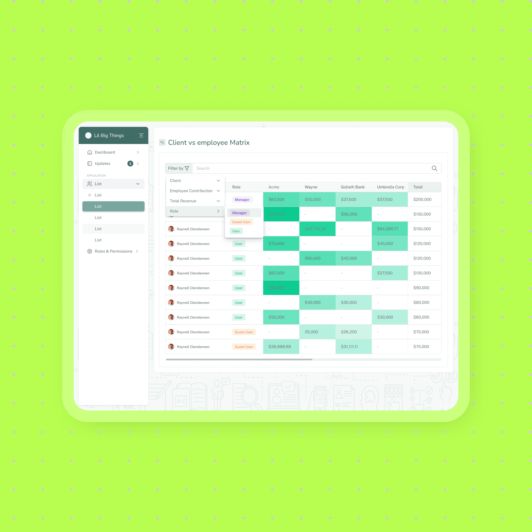 Flip the lights on revenue leaks. Instant P&L by project, client, team, or resource. Track which clients are most profitable and which clients cost you more than anticipated in a single view